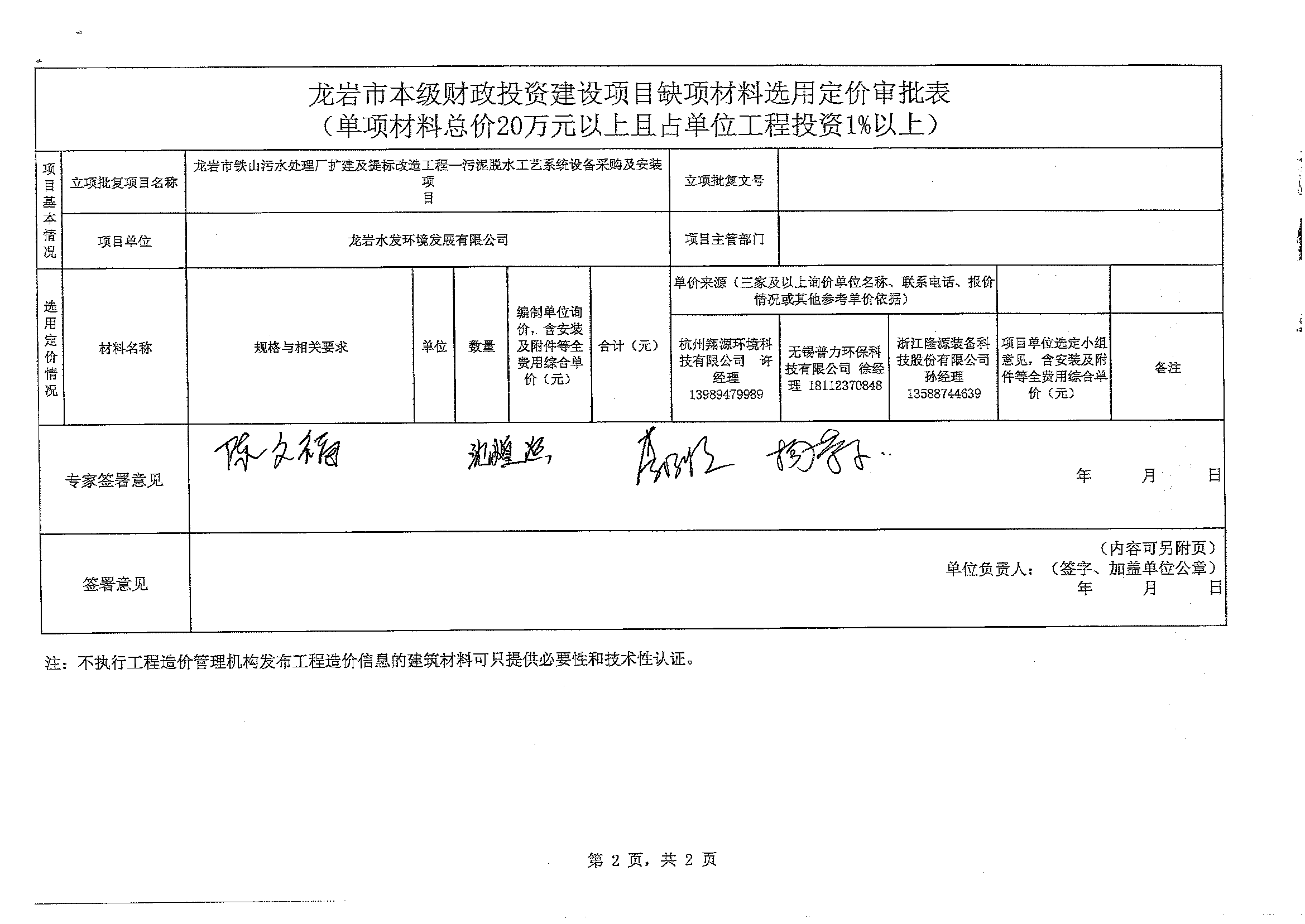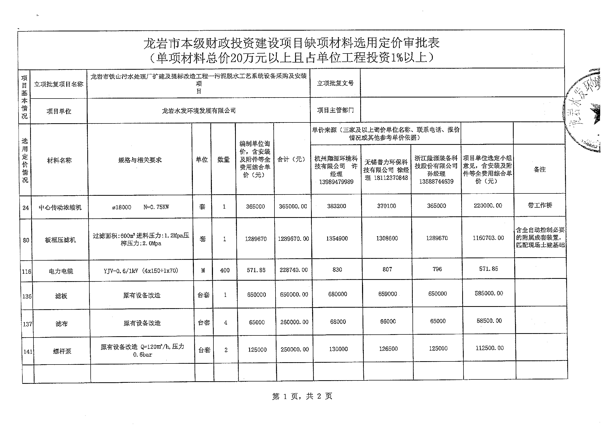 凭证《龙岩市财务局 龙岩市生长和刷新委员会 龙岩市住房和城乡建设局关于深化龙岩市本级财务投资评审刷新的实验意见》(龙财建〔2019〕62号)文件要求,,,,,,,,现将龙岩市铁山污水处置惩罚厂扩建及提标刷新工程-污泥脱水工艺系统装备采购及装置项目缺项质料增补定价公示(公示期:2023年12月15日-12月22日),,,,,,,,详细内容详见附件。。。。。。。。